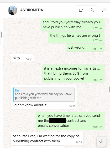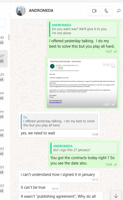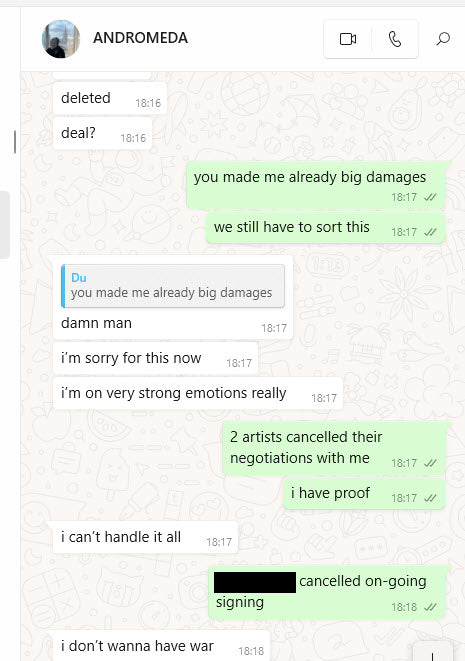 And yes — despite all this, Andromeda is still under contract with us. We continue to believe in our artists and the power of their music. But we also need to clear our name from the mud that was thrown our way.