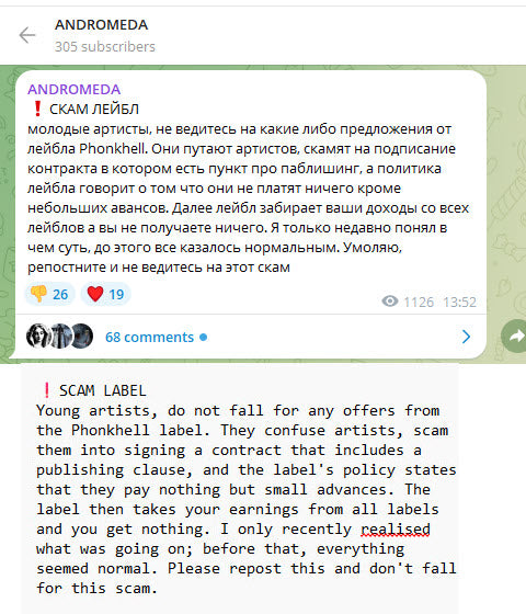 In the end, it doesn’t even feel like a question of right or wrong, or of legal contracts. On paper, everything is clear. What it really looks like is a matter of personal ambitions — artists deciding they don’t want to work with Phonkhell anymore and then searching for excuses to justify it. Instead of parting ways honestly in a professional way, they throw mud and cry “scam” to cover their actions and previous decisions.